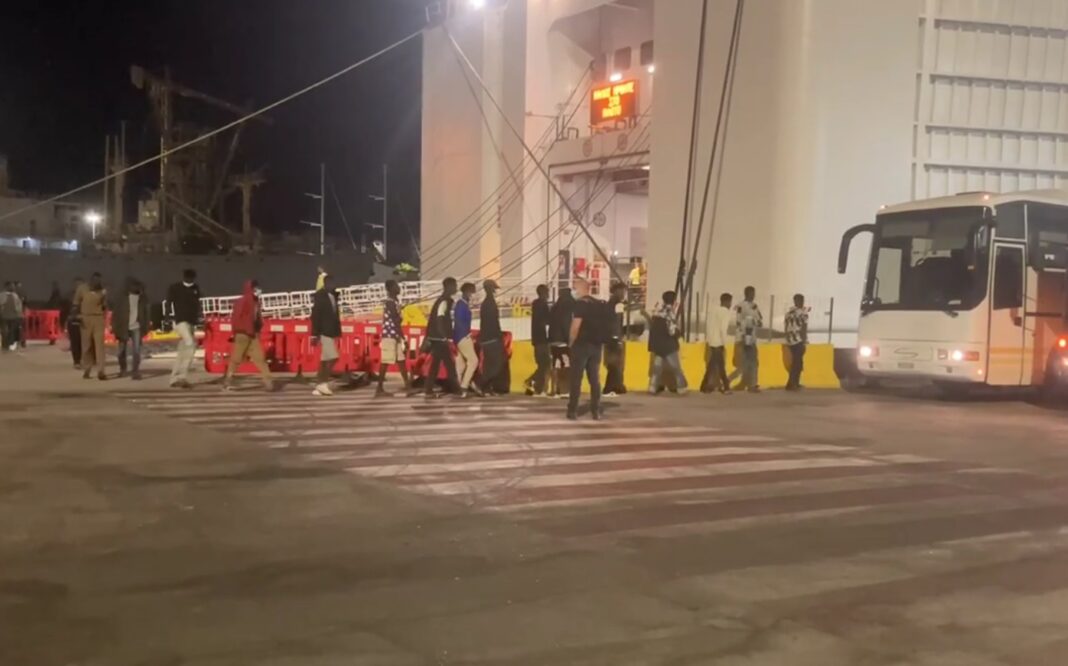 Η μεταφορά πραγματοποιήθηκε υπό αυστηρά μέτρα ασφαλείας, με ορισμένους από τους μετανάστες να αποβιβάζονται φορώντας χειροπέδες.