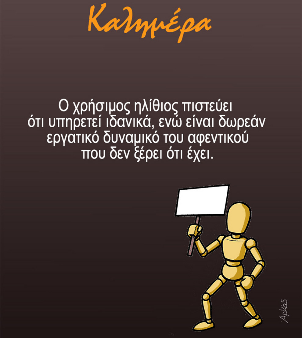 Ο «χρήσιμος ηλίθιος» είναι ο «πρωταγωνιστής» του σημερινού σκίτσου του Αρκά, με το οποίο καλημερίζει τους ακολούθους του στην επίσημη σελίδα στο Facebook.