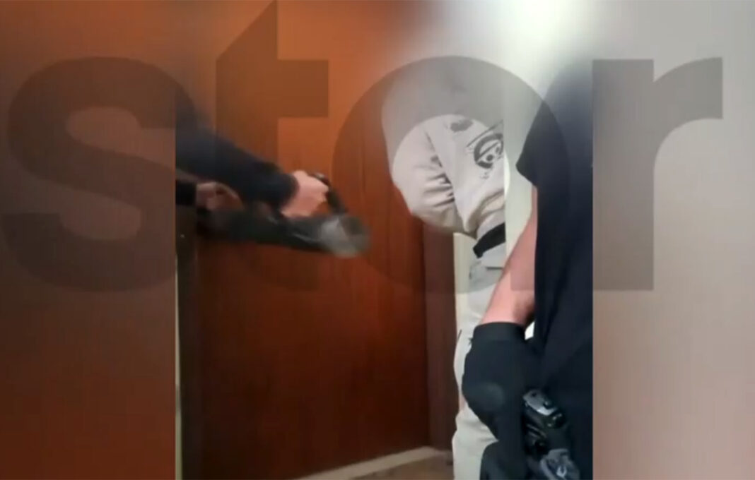 Η επιχείρηση, που καταγράφηκε σε βίντεο, δείχνει τους αστυνομικούς να σπάνε την πόρτα και να καλούν τον ύποπτο να παραμείνει ακίνητος, ενώ ο συλληφθείς ζούσε με τη μητέρα και τη γιαγιά του.