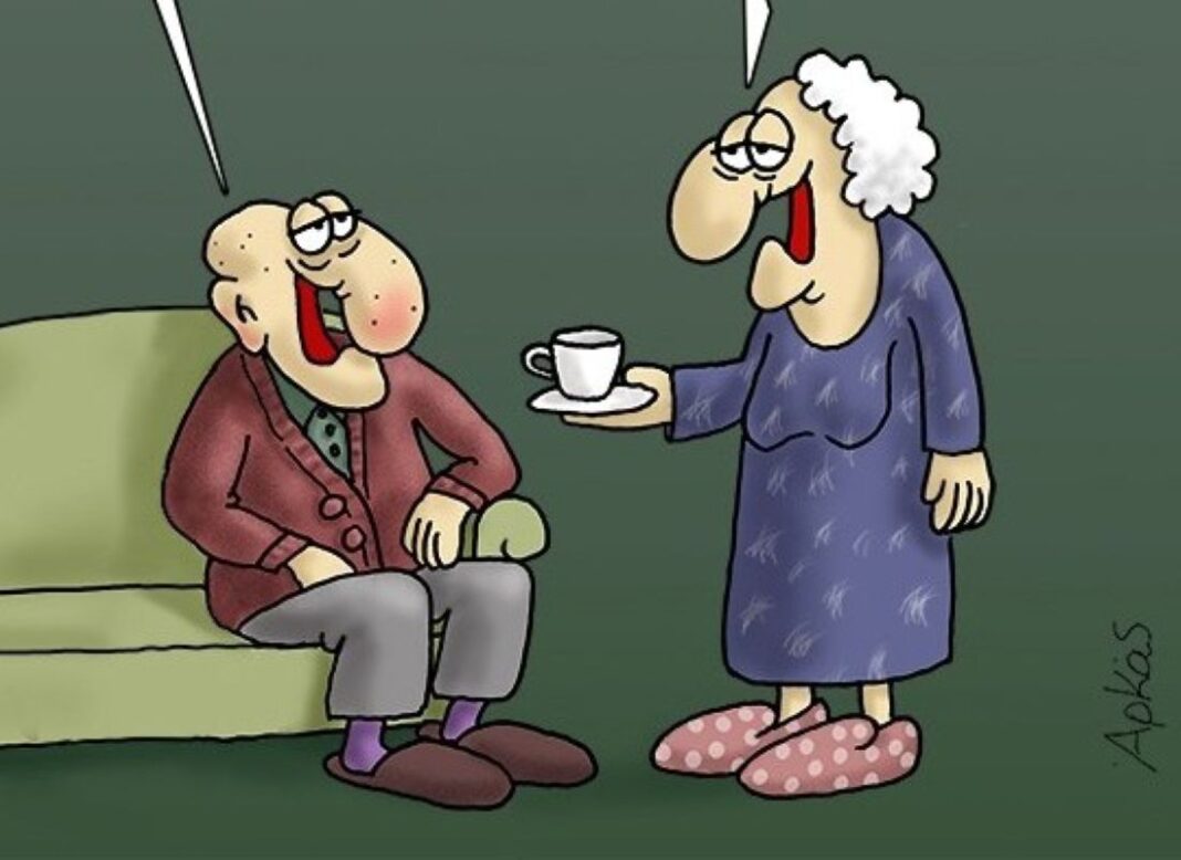 Ο Αρκάς αποκαλύπτει με χιούμορ τις προκλήσεις των μακροχρόνιων γάμων, όπου η συνήθεια και η υπομονή αντικαθιστούν τη ρομαντική σπίθα, μέσα από το χαρακτηριστικό του σκίτσο.