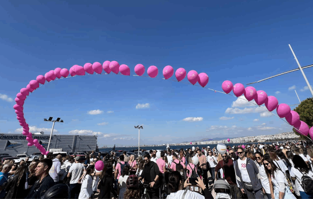 Η Θεσσαλονίκη μετατράπηκε σήμερα σε μία τεράστια αγκαλιά αλληλεγγύης και ελπίδας, καθώς χιλιάδες πολίτες όλων των ηλικιών συγκεντρώθηκαν στη Νέα Παραλία για να συμμετάσχουν στη μεγάλη πορεία ευαισθητοποίησης για τον καρκίνο του μαστού.