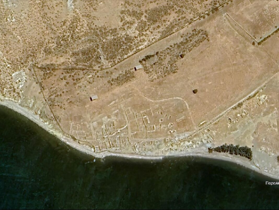 Ο εκτεταμένος οικισμός, που αναπτύχθηκε κατά μήκος της ακτής, ήταν κτισμένος αμφιθεατρικά στην πλαγιά του λόφου «Καραγιάννη». Εξαπλώνεται στην πεδινή έκταση, που σχηματίζεται νοτιοανατολικά του ορεινού όγκου, που φθάνει ως την θάλασσα. Ήταν οργανωμένος με οικίες χτισμένες κατά συστάδες και δρόμους στρωμένους με λίθους από την παραλία. Η ανάπτυξη του οικισμού ακολουθεί τη διαμόρφωση του εδάφους. Το ανατολικό και κεντρικό τμήμα του οικισμού βρίσκεται σε τέσσερα μέτρα ύψος περίπου από την επιφάνεια της θάλασσας, ενώ το χαμηλό στο επίπεδο της θάλασσας.