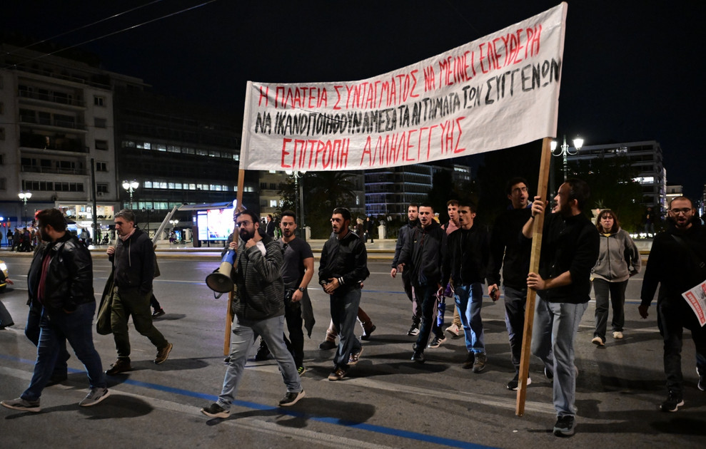 - Στο Σύνταγμα πραγματοποιείται διαμαρτυρία ενάντια στην ψήφιση τροπολογίας για το μνημείο του Αγνώστου Στρατιώτη.