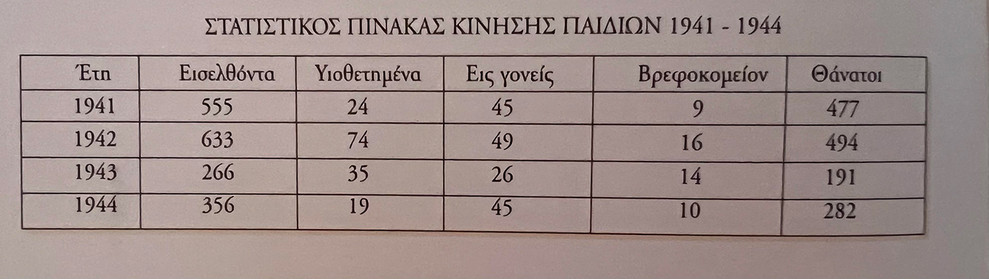 - Τα παιδιά του Δημοτικού Βρεφοκομείου Αθηνών υπήρξαν θύματα της Κατοχής, με την παιδική θνησιμότητα να φτάνει το 231% το 1942.