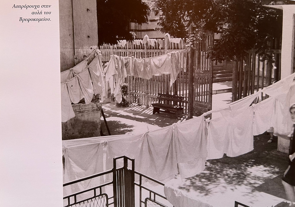 Περιγράφει την ίδρυση του Βρεφοκομείου ως αποτέλεσμα ιδιωτικής πρωτοβουλίας και την προσπάθεια των γυναικών της Αθήνας να στηρίξουν το ίδρυμα. Αναφέρεται επίσης σε δραματικά γεγονότα, όπως η πυρκαγιά του 1941 που στοίχισε τη ζωή 11 βρεφών.