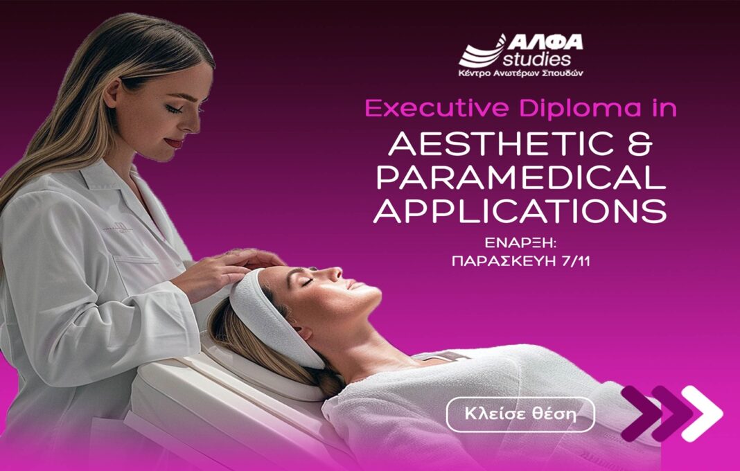 Το Κέντρο Ανωτέρων Σπουδών ΑΛΦΑ studies καινοτομεί στην Advanced επαγγελματική εξειδίκευση στην Αισθητική, ανακοινώνοντας άμεση έναρξη (7 Νοεμβρίου) σε Αθήνα, Πειραιά & Γλυφάδα για το πρωτοπόρο “Executive Diploma in Aesthetic & Paramedical Applications”, παρέχοντας σπουδές ανώτατου επιπέδου με διεθνή πιστοποίηση.