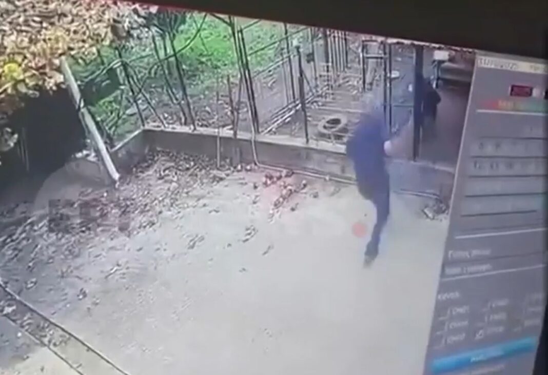 Ένα ακόμη βίντεο που ήρθε στη δημοσιότητα δείχνει τον άνδρα να βγάζει το σκυλί από περιφραγμένο χώρο και στη συνέχεια να επιχειρεί να του βάλει σπρέι και μετά το βάζει ξανά στον περιφραγμένο χώρο.