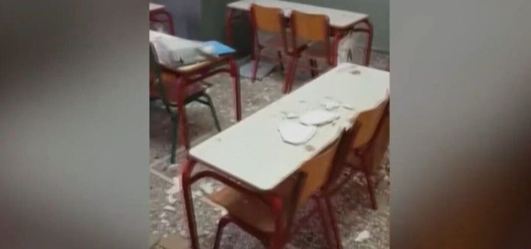 Όπως καταγγέλλουν οι γονείς των μαθητών, σε δημοτικό σχολείο της περιοχής έπεσαν σοβάδες και, για καλή τους τύχη, δεν υπήρχαν μαθητές εκείνη την ώρα στην αίθουσα, καθώς βρίσκονταν σε διάλειμμα.