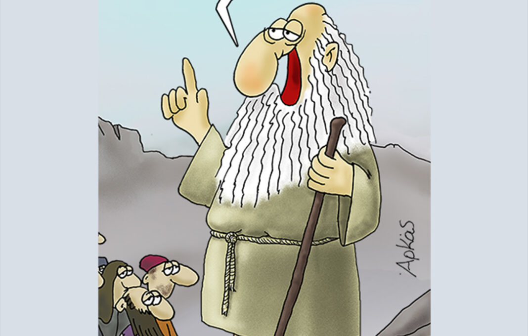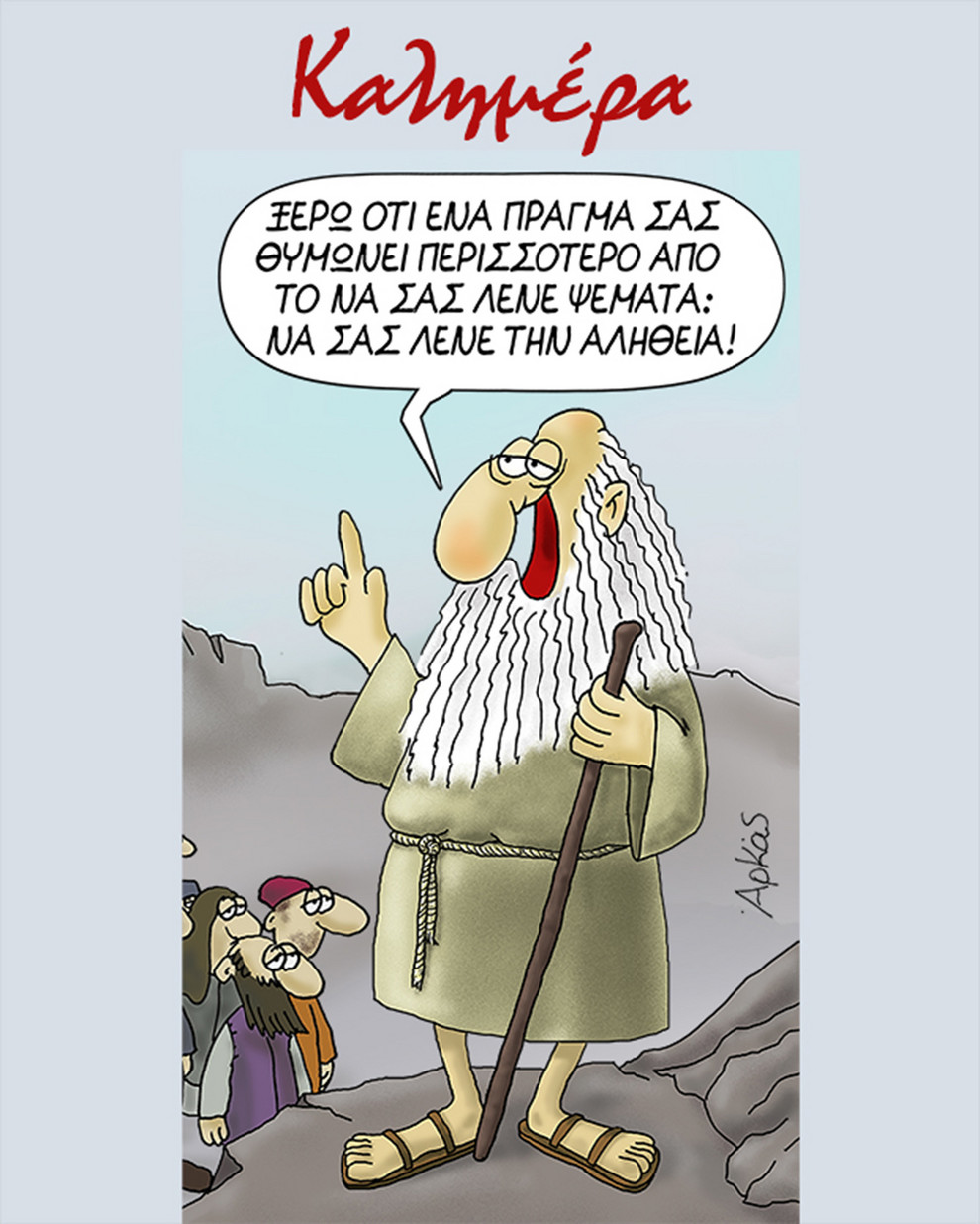 Ο Αρκάς επιστρέφει με ένα σκίτσο που προκαλεί σκέψεις για την αλήθεια και τα ψέματα, χρησιμοποιώντας τον προφήτη του για να σχολιάσει την ανθρώπινη φύση.