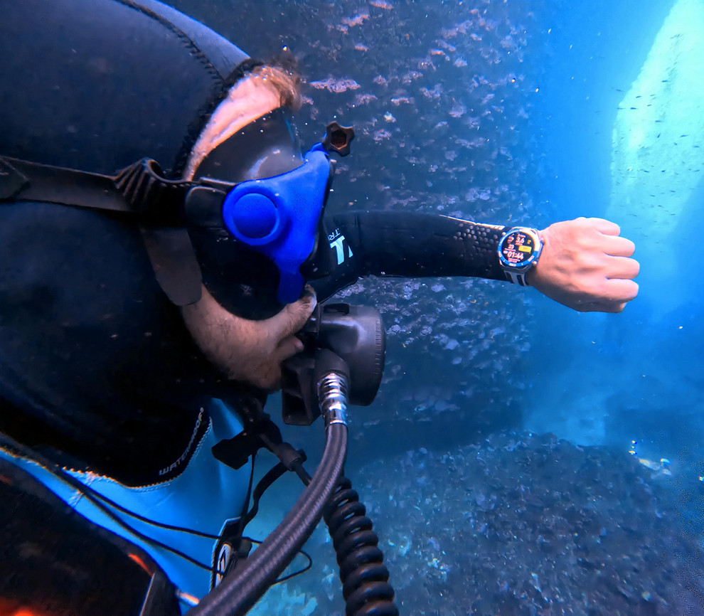 Στην Κεφαλονιά, πρόσφατα, έκανε μια κατάδυση σε υποβρύχιο στα -50 μέτρα χρησιμοποιώντας διαφορετικά μείγματα αερίων. «Το ρολόι μάς βοήθησε να κρατήσουμε σωστά βάθη, χρόνους, ταχύτητα ανάδυσης και αλλαγές αερίων», λέει. «Ακολουθώντας τις ενδείξεις, η βουτιά ήταν ασφαλής και ξέγνοιαστη».