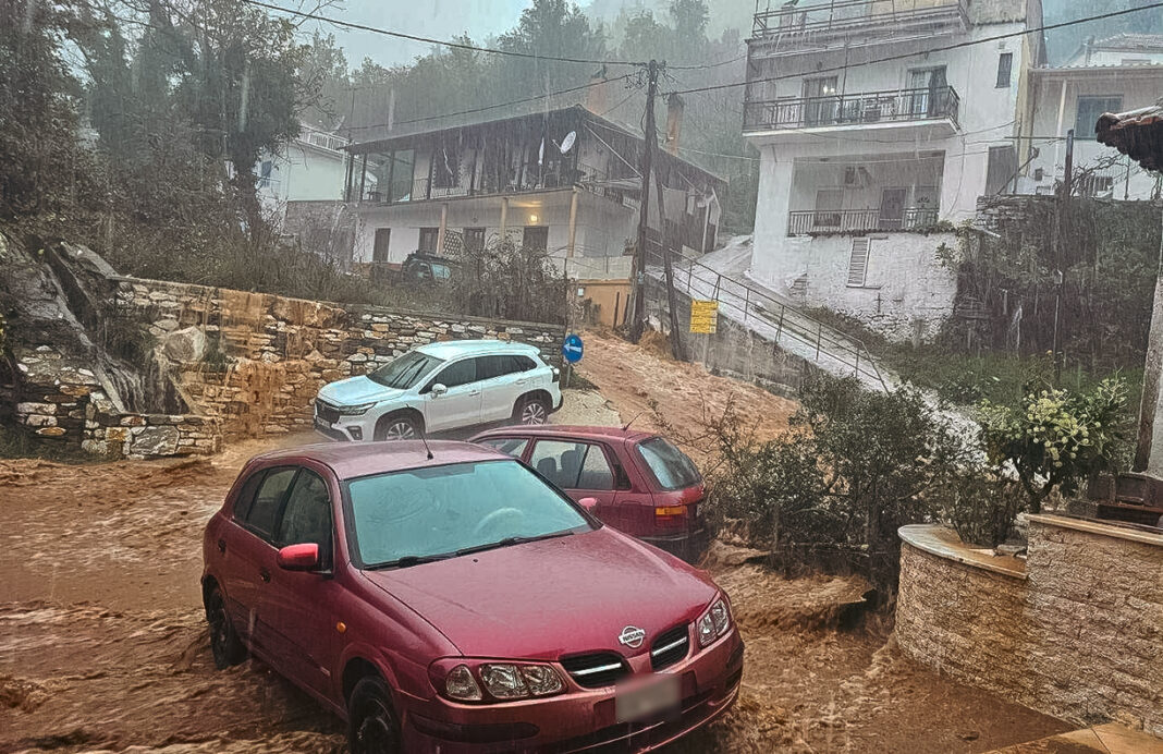 Μεγάλες ζημιές στη Θάσο από την κακοκαιρία Adel: Χείμαρροι στους δρόμους και αυτοκίνητα παρασύρονται
