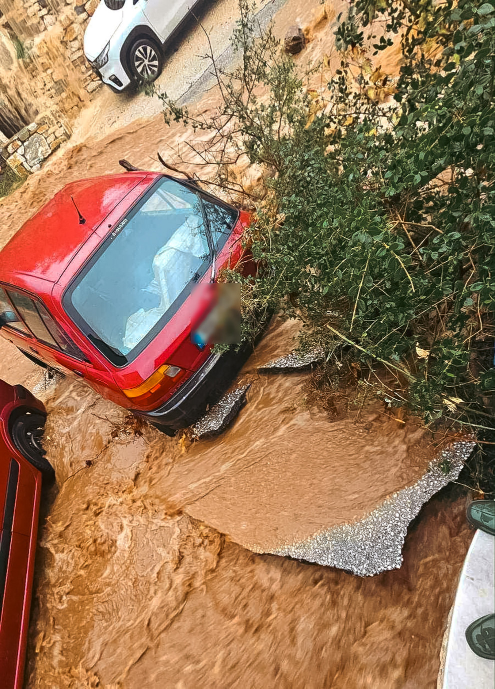 • Πολλά σταθμευμένα αυτοκίνητα παρασύρθηκαν από τα ορμητικά νερά, κυρίως στην περιοχή της Ποταμιάς.