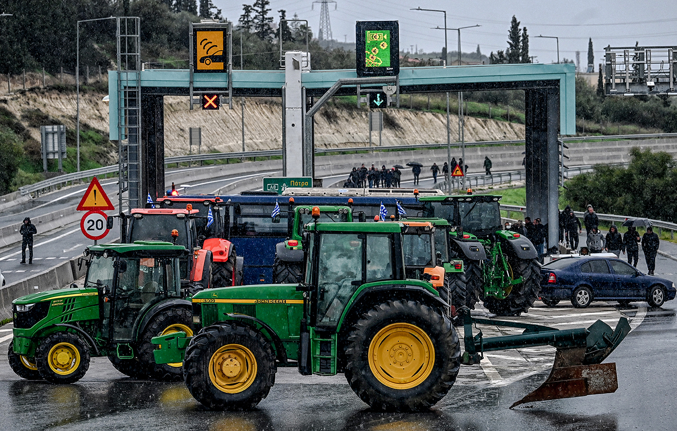 Οι αγρότες κλιμακώνουν τις διαμαρτυρίες τους, παρατάσσοντας τρακτέρ σε στρατηγικά σημεία, με στόχο να διπλασιάσουν τα μπλόκα και να εντείνουν την πίεση προς την κυβέρνηση.