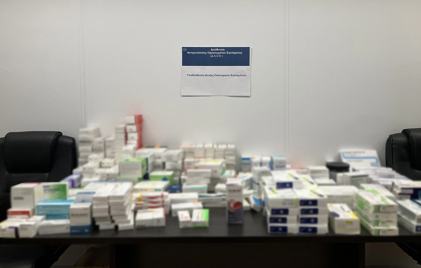 Από τη Διεύθυνση Αντιμετώπισης Οργανωμένου Εγκλήματος εξαρθρώθηκε εγκληματική ομάδα αποτελούμενη από ιδιοκτήτη φαρμακείου και γιατρούς διαφόρων ειδικοτήτων, που διέπρατταν κακουργηματικές απάτες σε βάρος του ΕΟΠΥΥ μέσω εικονικής συνταγογράφησης φαρμάκων.