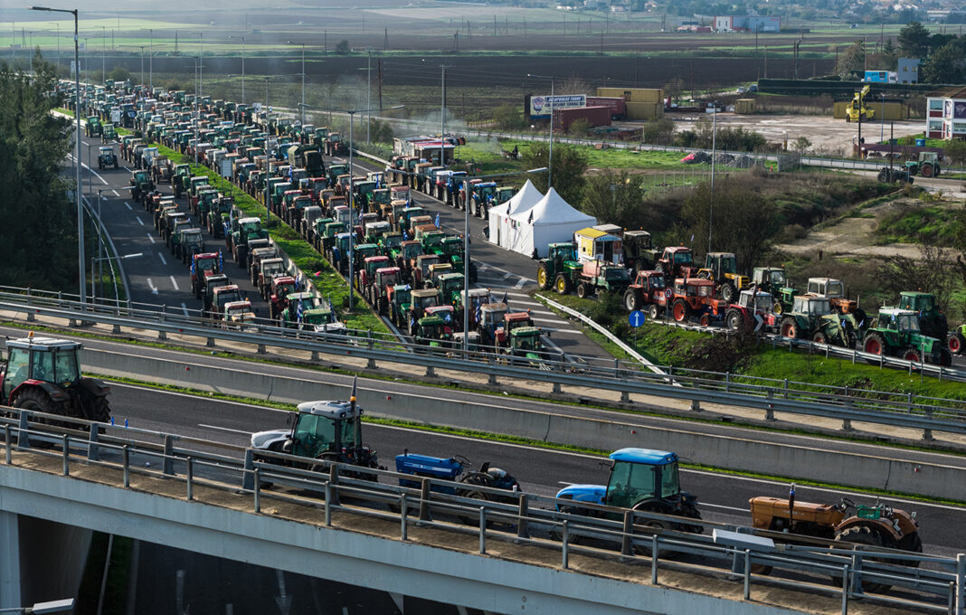 • Κατά τη διάρκεια της κινητοποίησης, οι αγρότες πραγματοποιούν μπλόκα σε κεντρικούς κόμβους και διανέμουν γεωργικά προϊόντα στους οδηγούς.