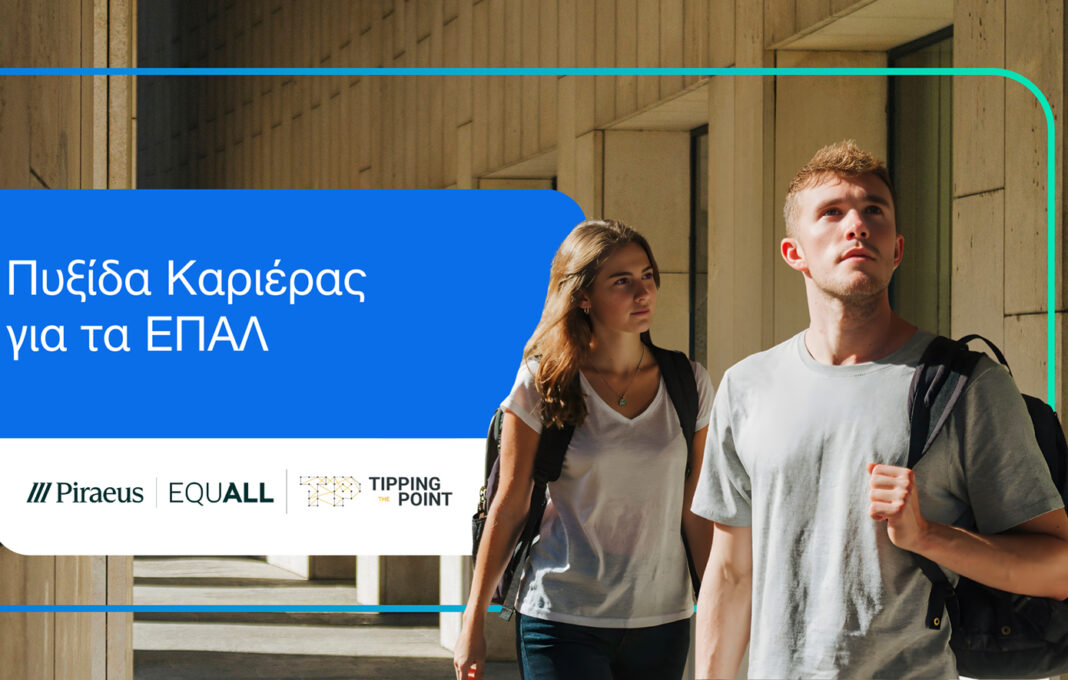 Η Πειραιώς, μέσω του προγράμματος Εταιρικής Υπευθυνότητας «EQUALL», σε συνεργασία με τον οργανισμό The Tipping Point, λανσάρει το εκπαιδευτικό πρόγραμμα «Πυξίδα Καριέρας για τα ΕΠΑΛ», στοχεύοντας να βοηθήσει 1.000 μαθητές/τριες Επαγγελματικών Λυκείων σε όλη την Ελλάδα να ανακαλύψουν τις δυνατότητές τους και να συνδέσουν τα ενδιαφέροντα και τις δεξιότητές τους με την αγορά εργασίας.