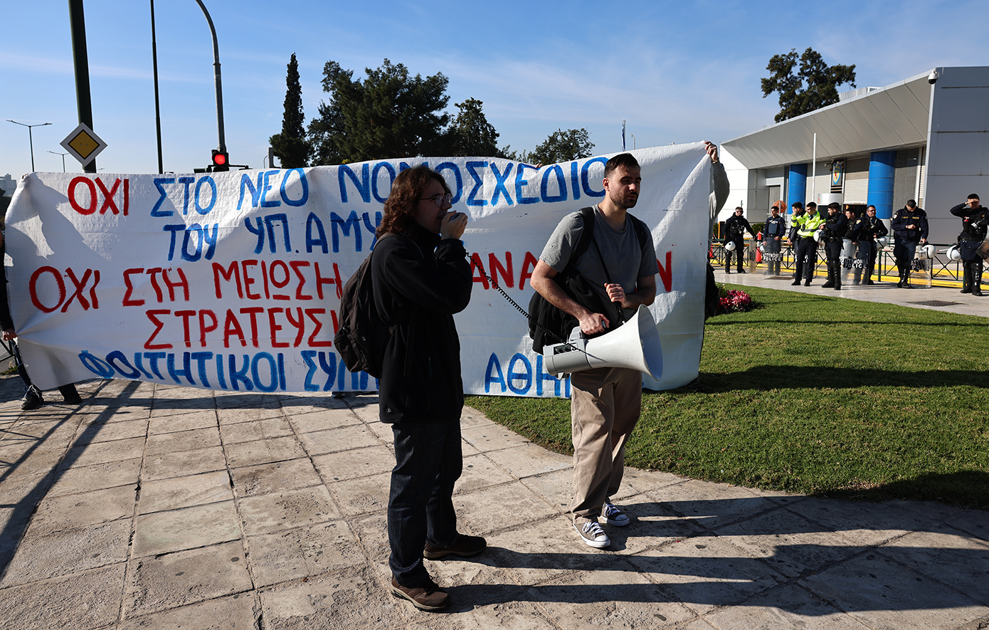 Συγκέντρωση διαμαρτυρίας έξω από το υπουργείο Εθνικής Άμυνας πραγματοποίησαν σήμερατο πρωί φοιτητές, υποψήφιοι διδάκτορες και νέοι επιστήμονες, αντιδρώντας στο νέο νομοσχέδιο που αλλάζει δραστικά το πλαίσιο της στρατιωτικής θητείας στην Ελλάδα.