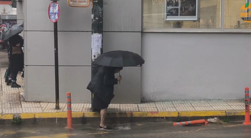 Η Αθήνα αντιμετωπίζει έντονες βροχοπτώσεις, προκαλώντας συσσωρεύσεις υδάτων σε διάφορες περιοχές της πόλης, με τους κατοίκους να προσπαθούν να αποφύγουν τα νερά.
