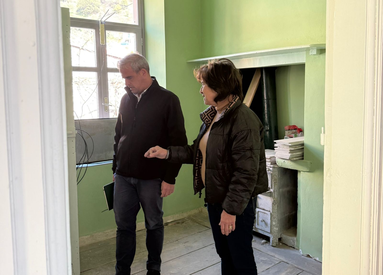Στο Παλαιοχώρι, μαζί με την Πρόεδρο Σοφία Κακλαμάνου, επισκέφτηκε το Κοινοτικό Κατάστημα του οικισμού, όπου ολοκληρώνονται οι παρεμβάσεις του Δήμου από το Τμήμα Αυτεπιστασίας στο εσωτερικό του κτιρίου, προκειμένου ο χώρος να καταστεί κατάλληλος για τη φιλοξενία των γραφείων της Δημοτικής Κοινότητας.