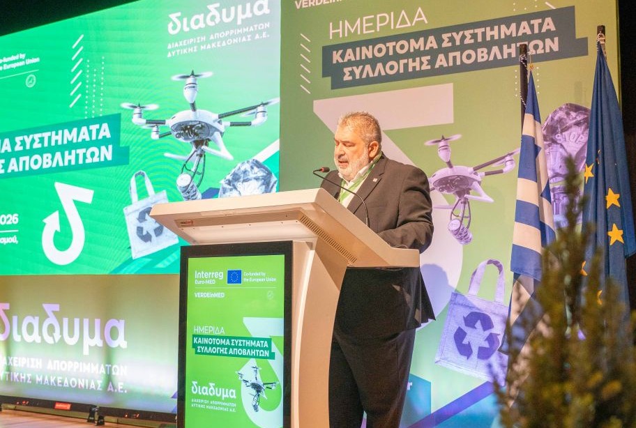 Με απόλυτη επιτυχία και τη συμμετοχή σημαντικών φορέων χάραξης περιβαλλοντικής πολιτικής στη χώρα, η ΔΙΑΔΥΜΑ Α.Ε. διοργάνωσε την Πέμπτη 5 Φεβρουαρίου 2026, στη Στέγη Ποντιακού Πολιτισμού στην Κοζάνη, μια κομβική ημερίδα με θέμα: «Καινοτόμα Συστήματα Συλλογής Αποβλήτων».