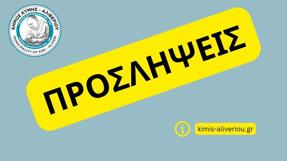 - Ο Δήμος Κύμης – Αλιβερίου προκηρύσσει οκτώ θέσεις εργασίας για άτομα με αναπηρία (ΑμεΑ).