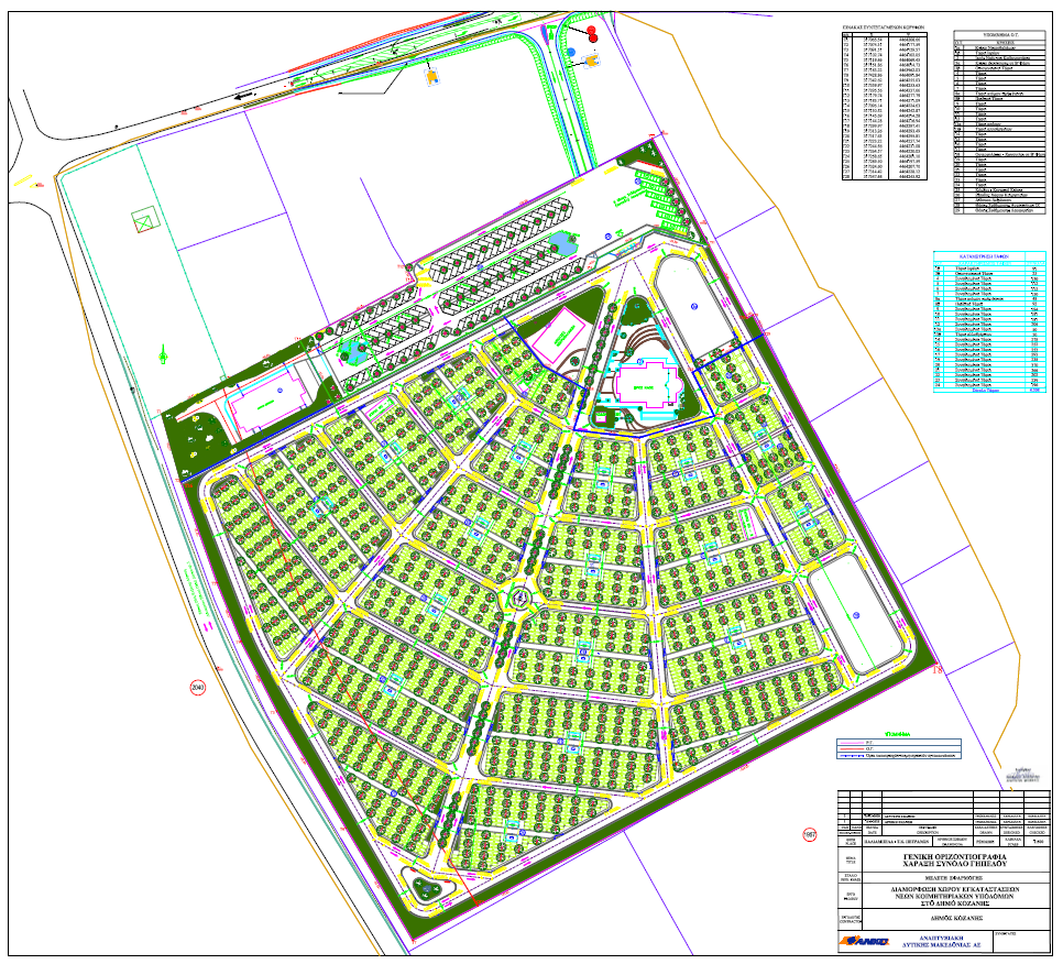 Ειδικότερα, το φυσικό αντικείμενο της πράξης περιλαμβάνει έργα διαμόρφωσης του γηπέδου και οργάνωσης των χώρων ταφής (Α’ φάση ανάπτυξης), κατασκευή εσωτερικής οδοποιίας και χώρων πρόσβασης, έργα αποστράγγισης και διαχείρισης ομβρίων, κατασκευή δικτύων ύδρευσης, καθώς και λοιπές υποστηρικτικές υποδομές. Περιλαμβάνονται επίσης εργασίες περίφραξης, διαμόρφωσης εισόδων, εγκατάστασης ηλεκτροφωτισμού και περιβαλλοντικών παρεμβάσεων, με πρόβλεψη φυτεύσεων και διαμόρφωσης κοινόχρηστων χώρων.