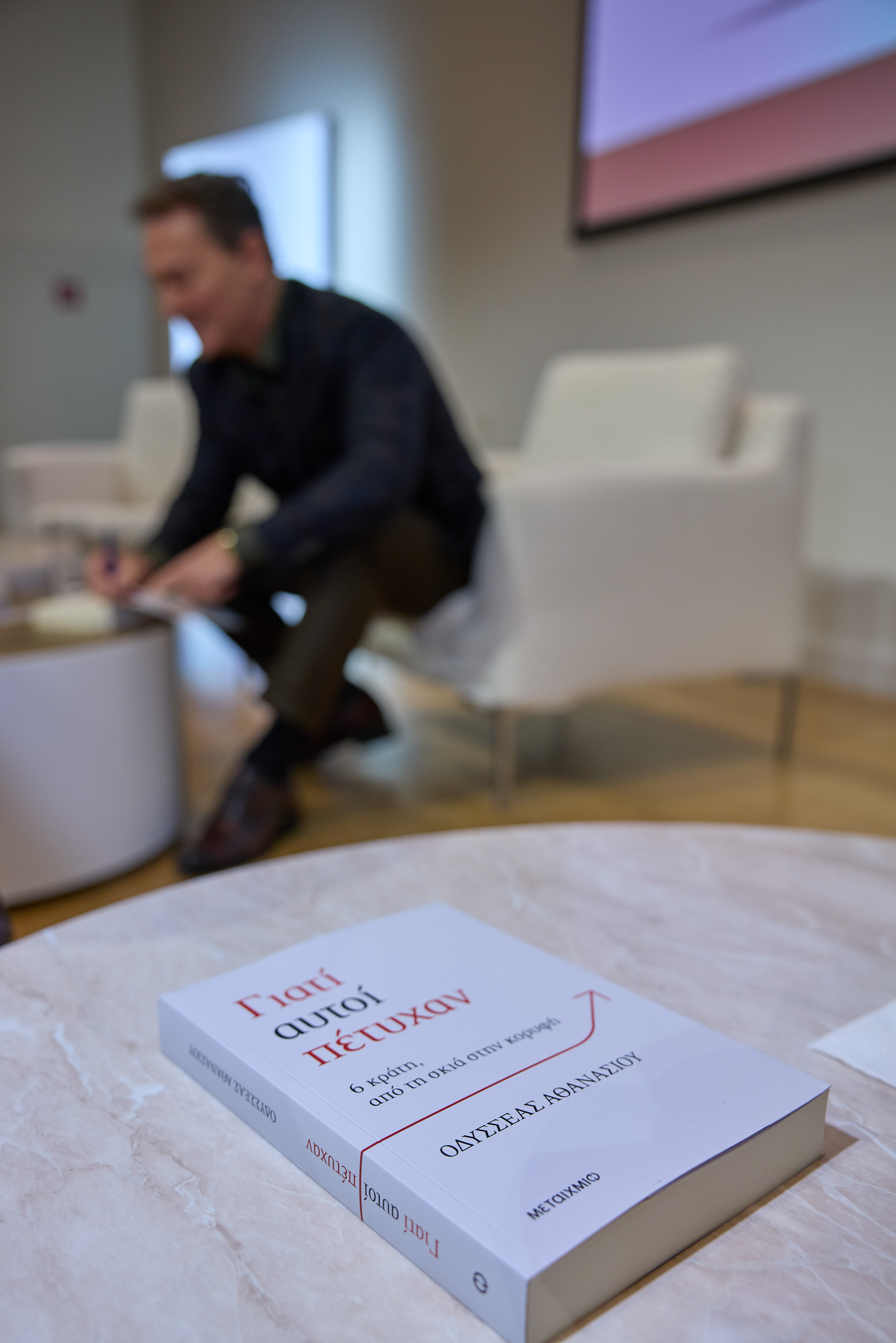 Ως CEO της LAMDA Development από το 2009, μέλος του Δ.Σ. της Endeavor Greece και πρώην μέλος για πολλά χρόνια του Δ.Σ. του ΣΕΒ, ο Οδυσσέας Αθανασίου συγκέντρωσε το ενδιαφέρον πολλών εκπροσώπων του επιχειρηματικού κόσμου. Η συζήτηση επιβεβαίωσε πόσο επίκαιρο και αναγκαίο είναι ένα βιβλίο που επιδιώκει να επαναπροσδιορίσει την έννοια της προόδου και της ανάπτυξης στο σήμερα.