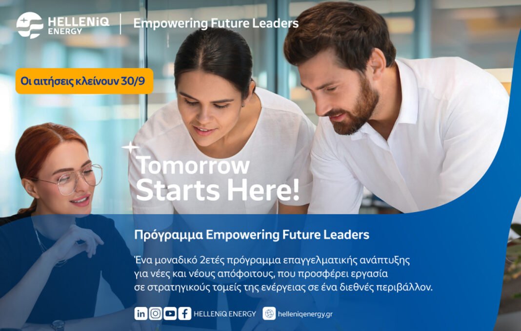 Η HELLENiQ ENERGY ολοκληρώνει την υποβολή αιτήσεων για το καινοτόμο Πρόγραμμα «Empowering Future Leaders» στις 30 Σεπτεμβρίου 2025. Το πρόγραμμα απευθύνεται σε νέους αποφοίτους με περιορισμένη επαγγελματική εμπειρία, προσφέροντας διετή εκπαίδευση σε τομείς όπως η Τεχνική, Εμπορική, Διοικητική κατεύθυνση και ο Ψηφιακός Μετασχηματισμός.