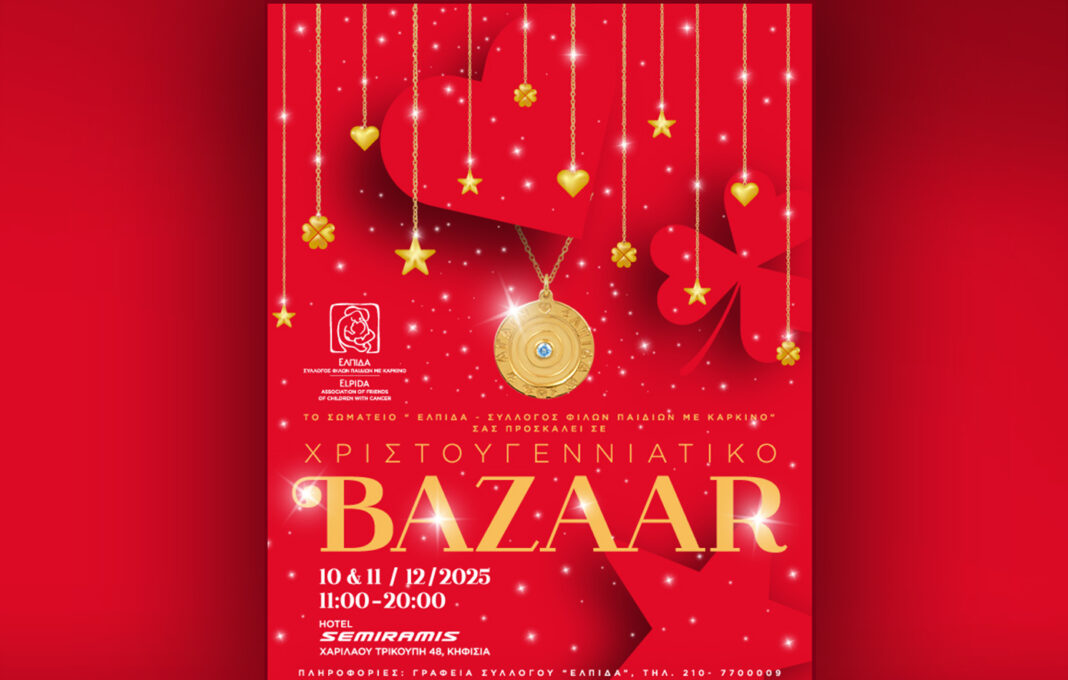 Για ακόμη μια χρονιά το σωματείο «ΕΛΠΙΔΑ – Σύλλογος Φίλων Παιδιών με καρκίνο» διοργανώνει το χριστουγεννιάτικο Bazaar του, την Τετάρτη 10 και την Πέμπτη 11 Δεκεμβρίου 2025, στο ξενοδοχείο «SEMIRAMIS» στο Κεφαλάρι, από τις 11 το πρωί μέχρι τις 8 το βράδυ, προκειμένου να στηριχτούν τα παιδιά με καρκίνο αλλά και οι οικογένειές τους.
