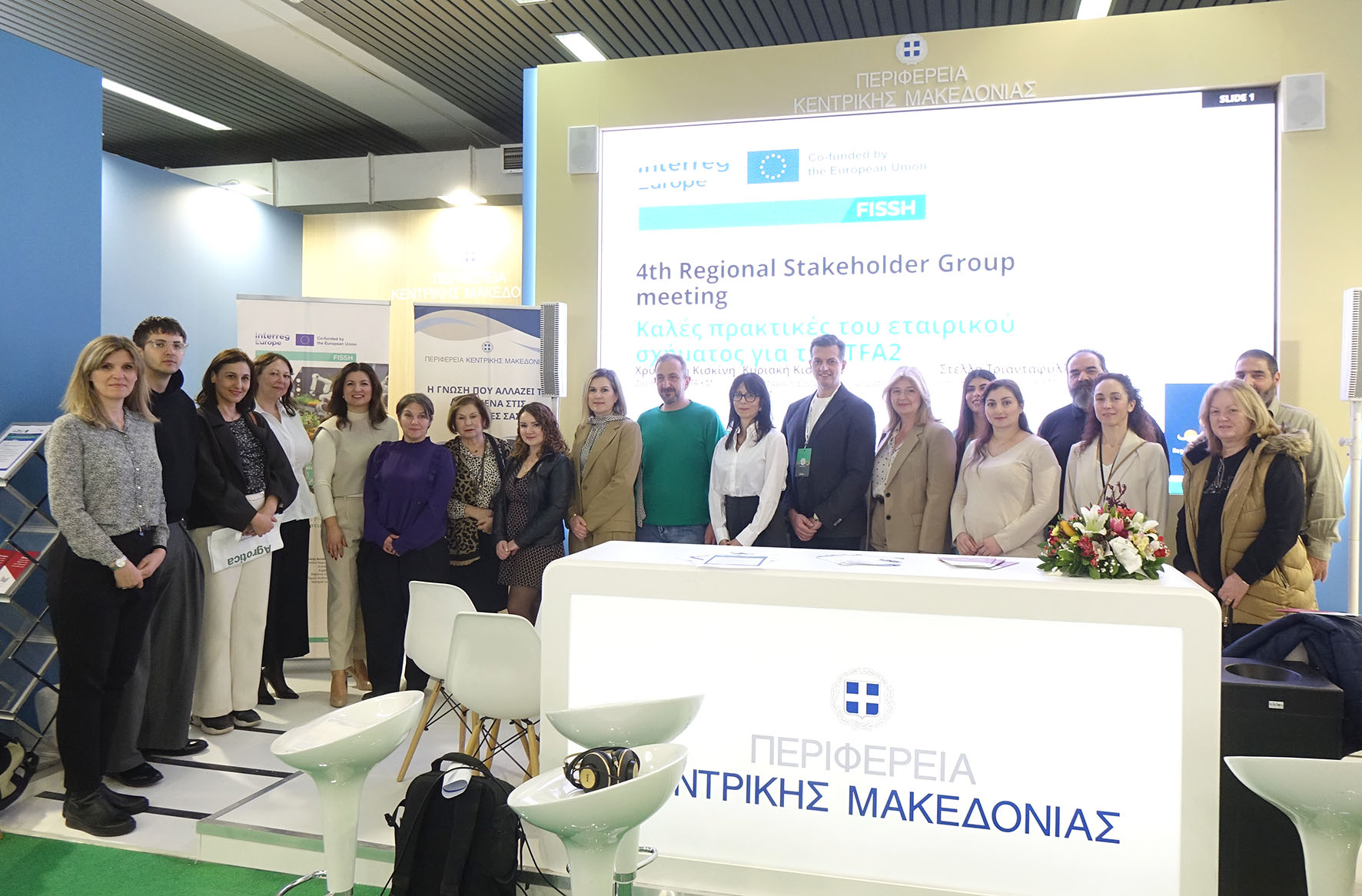 Την τέταρτη συνάντηση των μελών της Περιφερειακής Ομάδας Υποστήριξης (Regional Stakeholders Group – RSG) του έργου FISSH διοργάνωσε στη Θεσσαλονίκη το Περιφερειακό Ταμείο Ανάπτυξης Κεντρικής Μακεδονίας σε συνεργασία με την Ανατολική Α.Ε. ως εταίροι του έργου, με την υποστήριξη της Περιφέρειας Κεντρικής Μακεδονίας ως Συνεργαζόμενη Αρχή Χάραξης Πολιτικής.
