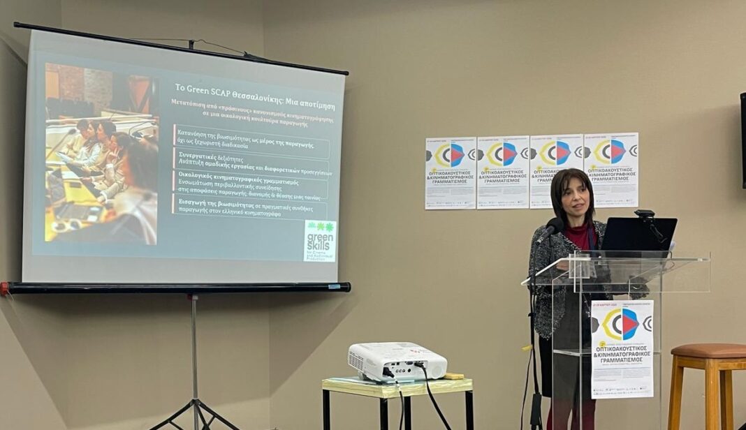 Στο πλαίσιο της παρουσίας του Film Office Κεντρικής Μακεδονίας στο συνέδριο, αναδείχθηκαν τα έως τώρα αποτελέσματα και η μεθοδολογία του ευρωπαϊκού έργου Green SCAP (Erasmus +), μιας στρατηγικής συμπράξης Ελλάδας, Ιταλίας και Ισπανίας, που υλοποιείται κατά τη διάρκεια του 2026 και στοχεύει στη μετάβαση του οπτικοακουστικού τομέα σε ένα νέο, βιώσιμο παράδειγμα κινηματογραφικής δημιουργίας. Όπως τονίστηκε, το έργο προσεγγίζει τον κινηματογράφο ως ένα οικοσύστημα πρακτικών, σχέσεων και υλικών διαδικασιών, όπου η βιωσιμότητα αποτελεί ενσωματωμένη δημιουργική αρχή και όχι εξωτερικό περιορισμό.