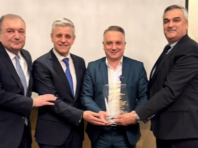 Ο κ. Μερελής εκπροσωπώντας το σύνολο της Διοίκησης του ΕΕΘ παρέλαβε την τιμητική πλακέτα, από τον Πρόεδρο της ΠΕΔ-ΚΜ κ. Ιγνάτιο Καϊτεζίδη, τον Αντιπεριφερειάρχη Μητροπολιτικής Ενότητας