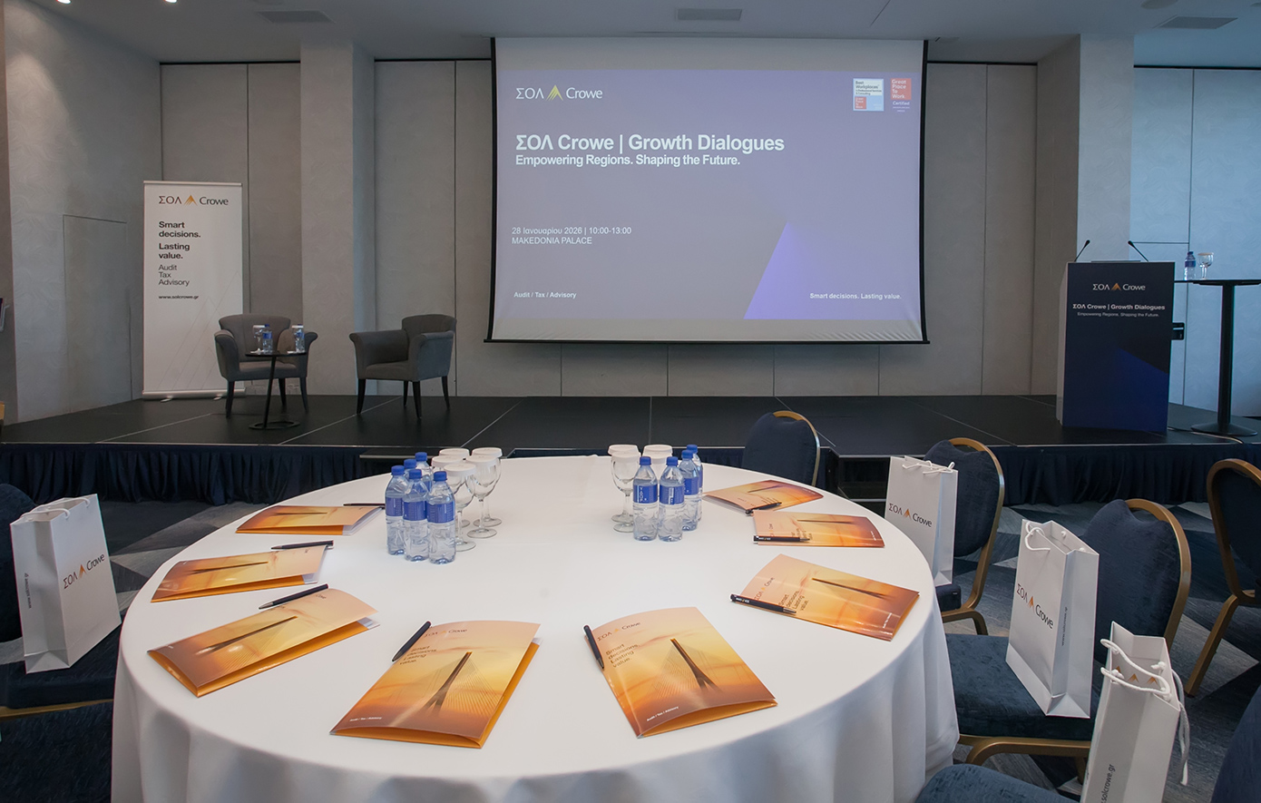 Με περισσότερους 150 εκπροσώπους του δημόσιου και ιδιωτικού τομέα της Βόρειας Ελλάδας, η ΣΟΛ Crowe άνοιξε το διάλογο για τις σύγχρονες ανάγκες των φορέων του ευρύτερου δημόσιου τομέα και των επιχειρήσεων, με τη διήμερη εκδήλωση που διοργάνωσε στη Θεσσαλονίκη, στις 28 και 29 Ιανουαρίου 2026, στο ξενοδοχείο Makedonia Palace.