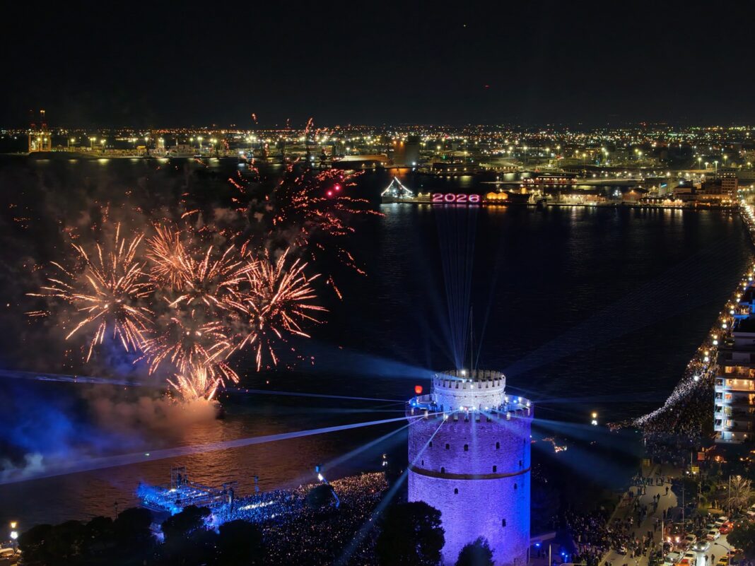 Η Θεσσαλονίκη γιόρτασε το 2026 με φαντασμαγορικό laser show και πλήθος κόσμου στον Λευκό Πύργο