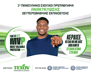 Ένα (1) ταξίδι πέντε (5) ημερών* Ένα στις ΗΠΑ για όλους τους μαθητές του πρωτεύσαντος σχολικού τμήματος ανά Τάξη Δευτεροβάθμιας Eκπαίδευσης για να δουν από κοντά τον Γιάννη Αντετοκούνμπο να παίζει σε έναν αγώνα NBA.