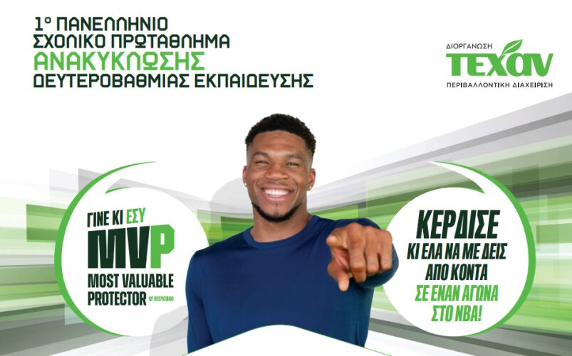Ο Γιάννης Αντετοκούνμπο παρακινεί κάθε μαθητή «ΓΙΝΕ ΚΙ ΕΣΥ MVP ΤΗΣ ΑΝΑΚΥΚΛΩΣΗΣ» – «ΚΕΡΔΙΣΕ ΚΑΙ ΕΛΑ ΝΑ ΜΕ ΔΕΙΣ ΑΠΟ ΚΟΝΤΑ ΣΕ ΕΝΑΝ ΑΓΩΝΑ ΣΤΟ ΝΒΑ!»