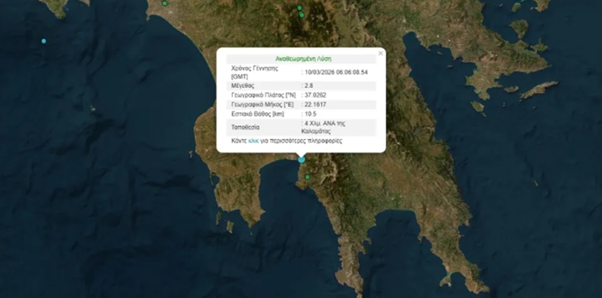 Λίγες ώρες νωρίτερα, το πρωί της Τρίτης (10/03), είχε προηγηθεί ακόμη μία δόνηση μεγέθους 2,8 Ρίχτερ στην ίδια περιοχή.