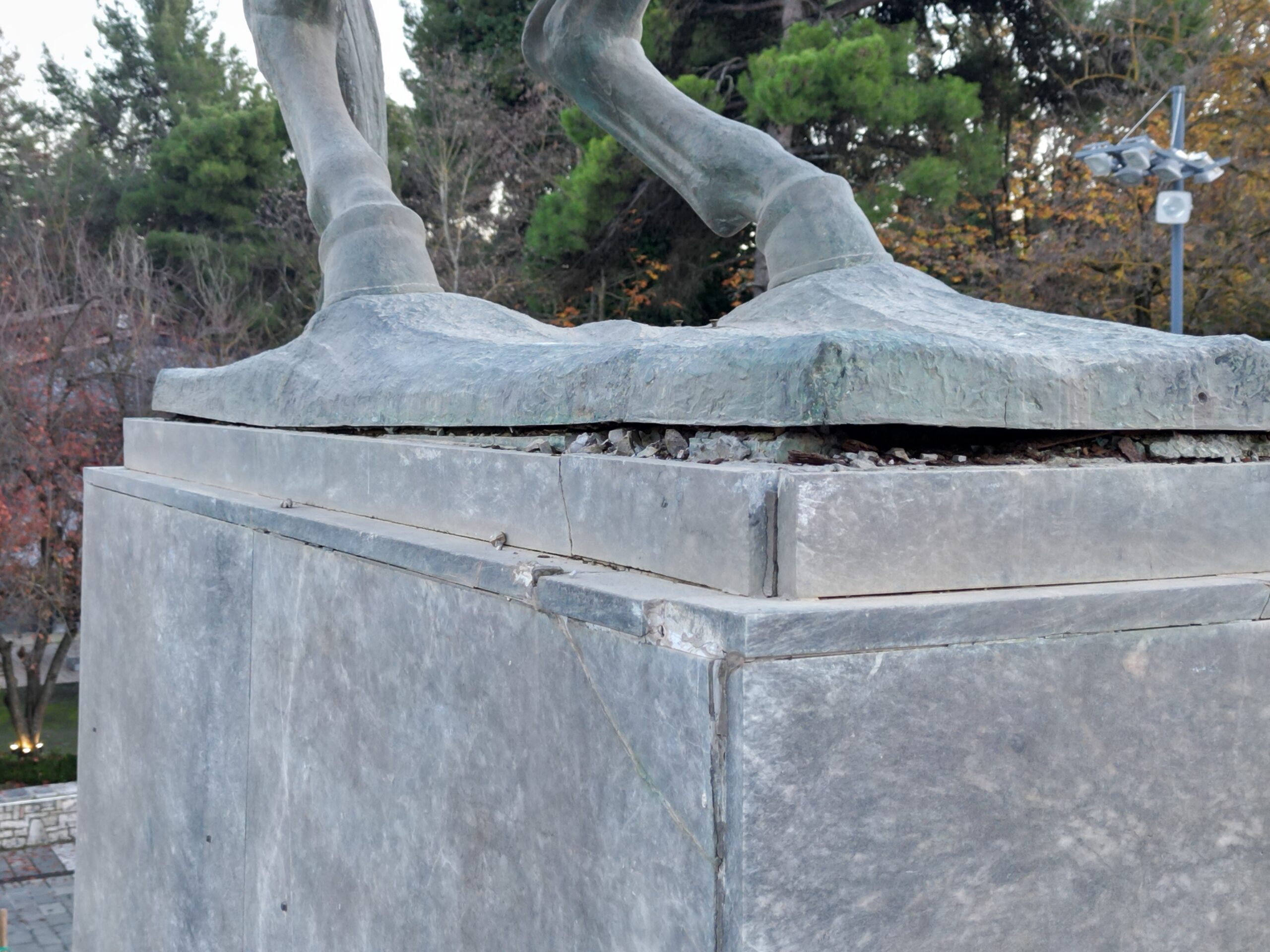 Δεδομένων των παραπάνω, ολοκληρώθηκε η πρώτη φάση με την ασφαλή απόσπαση του γλυπτού από το βάθρο και τη μεταφορά του σε ειδικό εργαστήριο προκειμένου να ξεκινήσουν οι εργασίες συντήρησης, χωρίς να διαταραχθεί η γεωμετρία και η σύνθεση του αγάλματος. Τα επόμενα στάδια είναι καταγεγραμμένα στην έκθεση και μπορείτε να τα διαβάσετε αναλυτικά. Ο προβλεπόμενος χρόνος συντήρησης εκτιμάται στους τρεις (3) μήνες περίπου σε ειδικά διαμορφωμένο χώρο στη ΒΙΠΕ Τρίπολης, ο οποίος θα φυλάσσεται από εταιρεία security 24 ώρες το 24ωρο. Στο διάστημα αυτό θα ενημερώνουμε τους πολίτες με δελτία τύπου και βίντεο για την εξέλιξη των εργασιών.