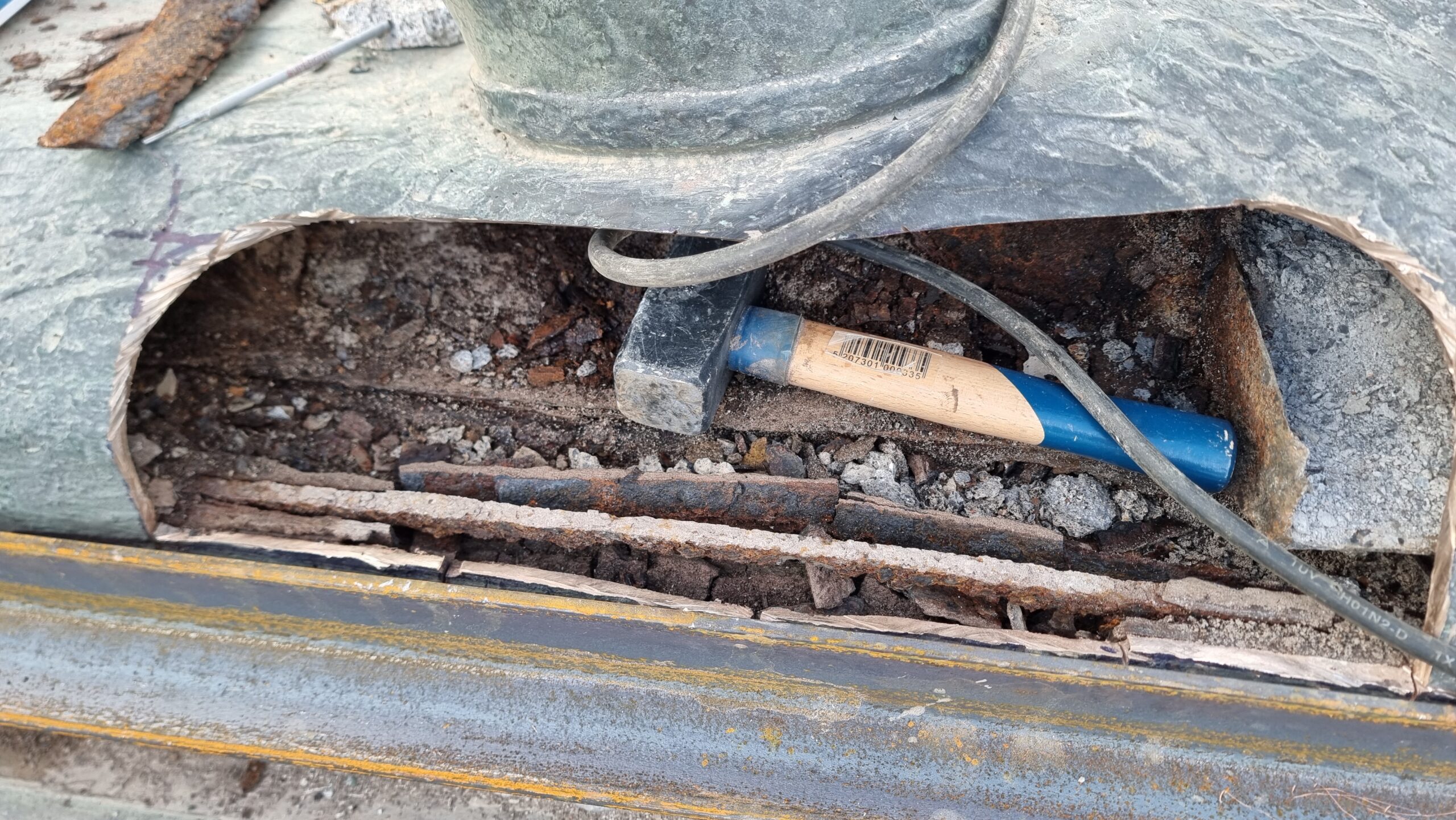 Άλλωστε, τα μακροσκοπικά ευρήματα επιβεβαιώθηκαν και από τον καθηγητή της ΑΣΚΤ και γλύπτη κ. Μάρκο Γεωργιλάκη, μετά τη διαγνωστική τομή, ο οποίος ξεκάθαρα αναφέρει τα εξής: οι φθορές του ανδριάντα είναι πολύ σοβαρές λόγω των καταπονήσεων που έχει δεχτεί από τις καιρικές συνθήκες, τις πιέσεις του αέρα κ.λπ., αλλά εξίσου σοβαρά είναι και τα προβλήματα στο εσωτερικό του έργου, τα οποία επηρεάζουν την ασφαλή στήριξή του στο βάθρο. Η παραμονή του υπό αυτές τις συνθήκες θέτει ζητήματα ασφάλειας, καθώς μπορεί οποιαδήποτε στιγμή να συμβεί κάποιο ατύχημα, μικρής ή μεγάλης σημασίας. Στην έκθεση του κ. καθηγητή προστέθηκε και το έγγραφο του Υπουργείου Πολιτισμού, σύμφωνα με το οποίο η κατάσταση έδρασης του ανδριάντα επί του βάθρου κρίνεται ιδιαιτέρως επισφαλής και δυνητικά επικίνδυνη, τόσο για το κοινό όσο και για το ίδιο το γλυπτό, με αποτέλεσμα να καθίσταται αναγκαία η μεταφορά του.