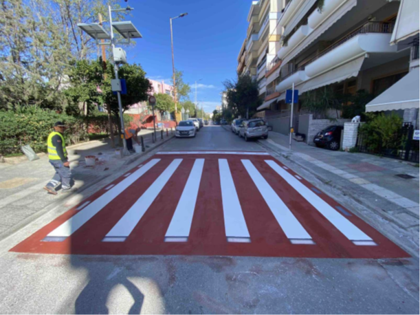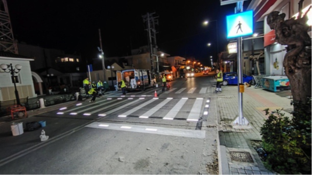 Το Σύστημα Έξυπνης Διάβασης Πεζών έξω από τα σχολεία, είναι ένα πρωτοποριακό σύστημα, το οποίο εξασφαλίζει την ασφαλή διέλευση των μαθητών και πεζών στην περιοχή παρέμβασης. Πιο συγκεκριμένα, το σύστημα θα ενεργοποιείται με την παρουσία μαθητή ή πεζού, ώστε να ενισχύεται η προσοχή τόσο των μαθητών, όσο και των διερχόμενων από τη διάβαση οχημάτων. Αποτέλεσμα της ενεργοποίησης είναι ο φωτισμός της πεζοδιάβασης από τις συσκευές σήμανσης τύπου LED, οι οποίες είναι ενσωματωμένες τόσο στην άσφαλτο όσο και στο πεζοδρόμιο, αλλά και η ταυτόχρονη ενεργοποίηση των κατακόρυφων πινακίδων σηματοδότησης LED, επιτυγχάνοντας το επιθυμητό αποτέλεσμα φωτεινής σήμανσής της.