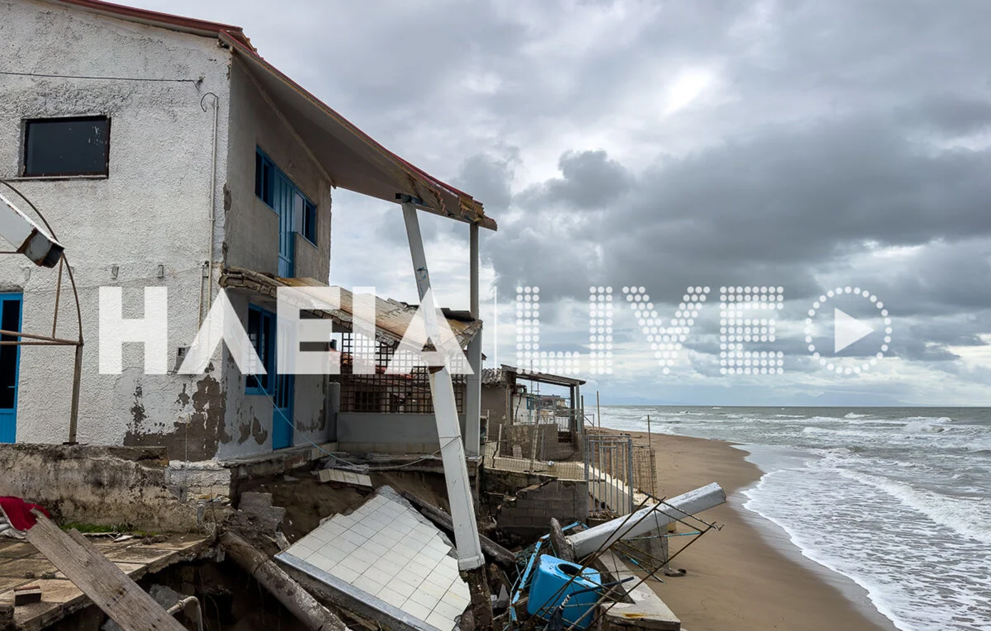 Η θάλασσα «καταβρόχθισε» τη βάση του κτιρίου και σιγά σιγά κατέστρεψε και μεγάλο τμήμα του ισογείου. Σε άλλες περιοχές της Ηλείας, στην Πρέβεζα και στην Παλαιοκαστρίτσα, υπάρχουν αρκετές κυκλοφοριακές ρυθμίσεις.