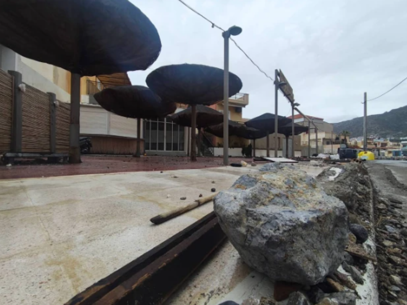 Την ίδια ώρα, η έντονη παρουσία αφρικανικής σκόνης επιβάρυνε ακόμη περισσότερο την κατάσταση, μειώνοντας αισθητά την ορατότητα και δημιουργώντας αποπνικτική ατμόσφαιρα στην περιοχή. Η σημερινή εικόνα της Παλαιοχώρας αποτυπώνει το μέγεθος της καταστροφής, με κατοίκους και επαγγελματίες να μετρούν τις πληγές τους και να ζητούν άμεση καταγραφή και αποζημίωση των ζημιών.