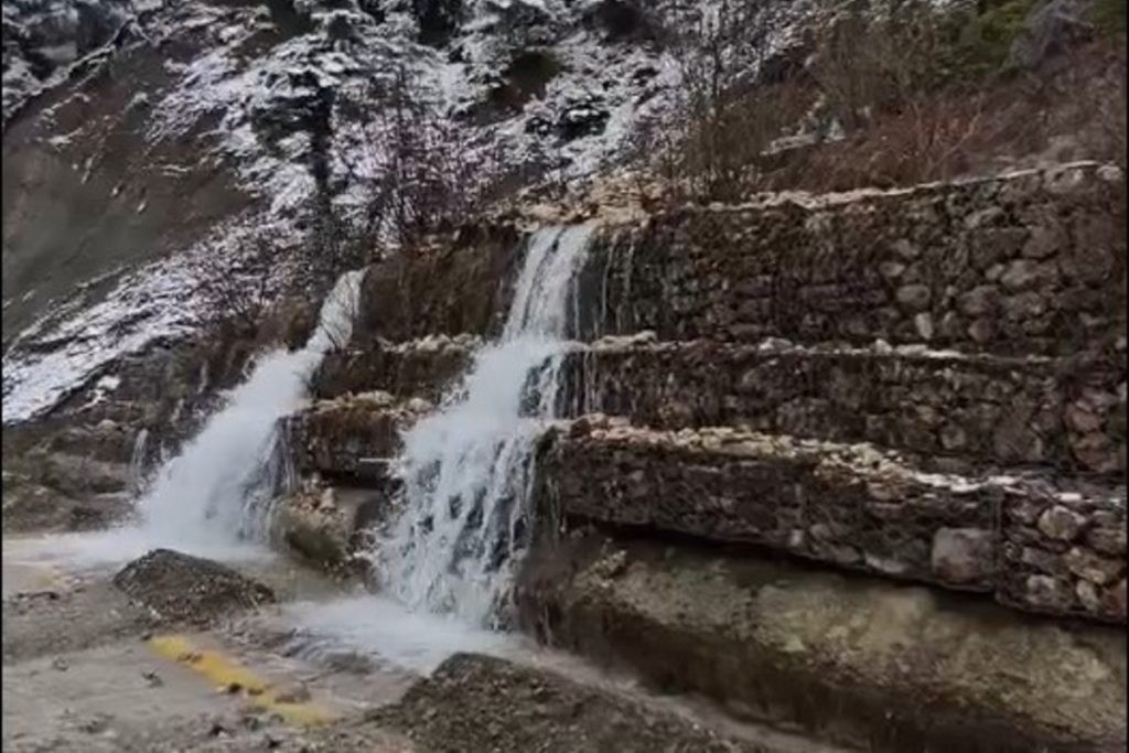 Στον δρόμο από τις Καμάρες προς τα Βορίζια, βράχος κατέληξε στο οδόστρωμα.