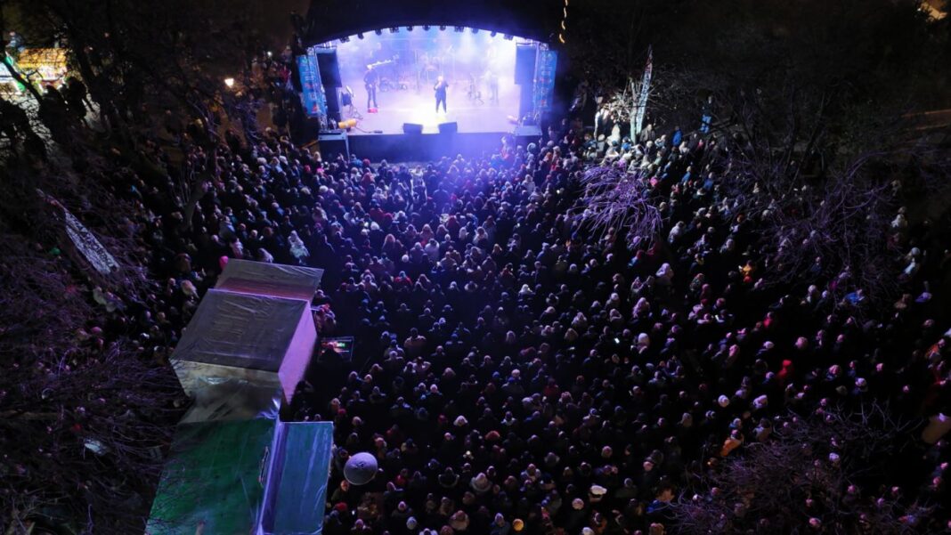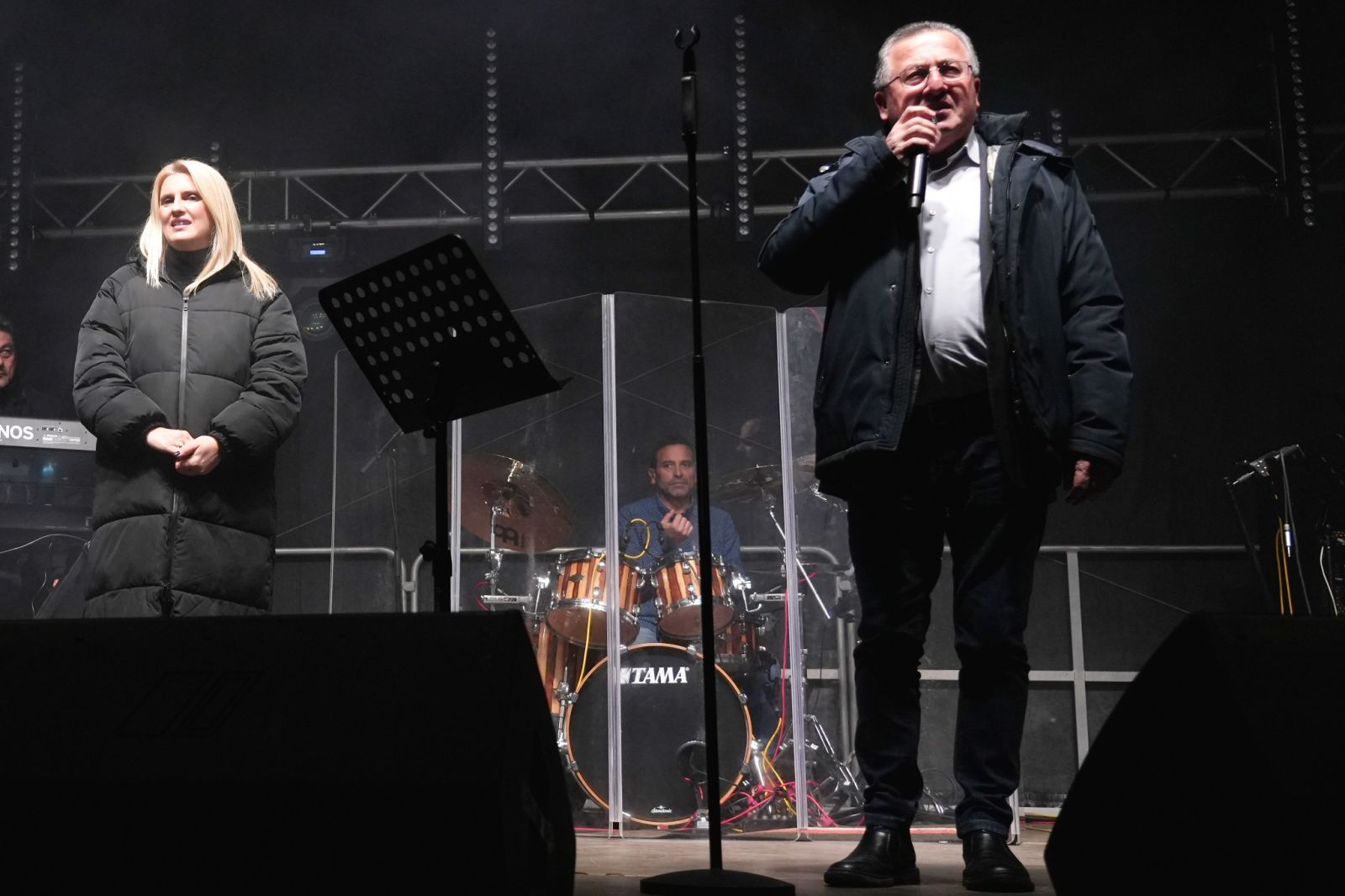 Οι εντυπωσιακοί φωτισμοί της σκηνής, τα χρώματα του πάρκου, το πλήθος των επισκεπτών και η αλληλεπίδραση του καλλιτέχνη με το κοινό συνέθεσαν μια ξεχωριστή μουσική εκδήλωση. Χαιρετισμό στην έναρξη της βραδιάς, απηύθυνε ο Δήμαρχος Κατερίνης, Ιωάννης Ντούμος, ο οποίος εξέφρασε ευχαριστίες για την καθημερινά μεγάλη προσέλευση επισκεπτών και την ανταπόκριση ατόμων όλων των ηλικιών. «Το Πάρκο των Χρωμάτων είναι ένας ζωντανός χώρος χαράς και ψυχαγωγίας για όλους» τόνισε χαρακτηριστικά. Παράλληλα, ευχήθηκε καλή χρονιά σε όλους. Κοινό και καλλιτέχνες καλωσόρισε και η αντιδήμαρχος Πολιτισμού – Τουρισμού, Ελίνα Διαμαντοπούλου.