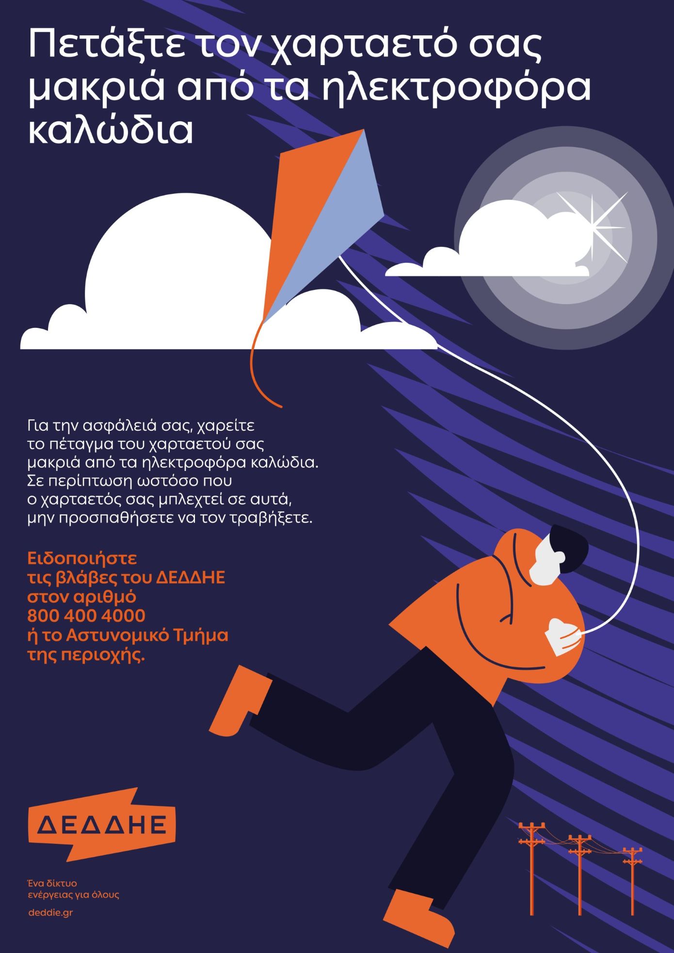 Οδηγίες ασφαλείας από τον ΔΕΔΔΗΕ για την αποφυγή ατυχημάτων και διακοπών ρεύματος κατά το πέταγμα χαρταετού κοντά σε ηλεκτροφόρα καλώδια.