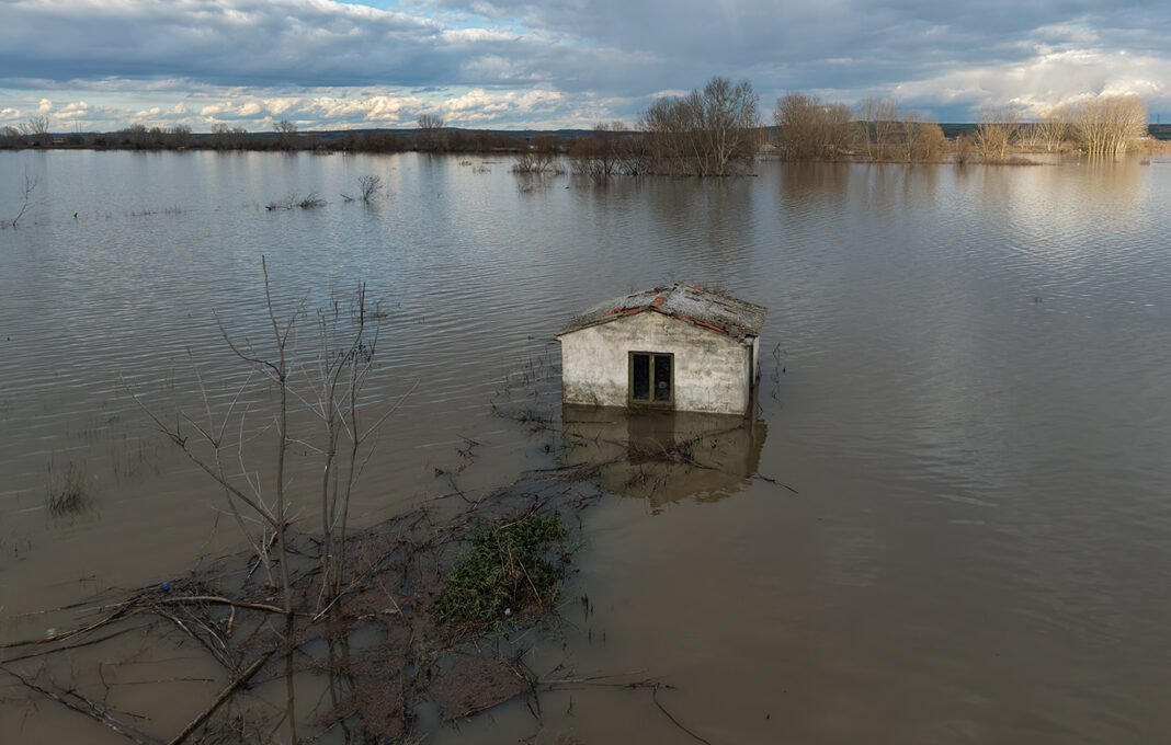 Οι καιρικές εξελίξεις πλήττουν ιδιαίτερα το Πύθιο Διδυμοτείχου, μια περιοχή παραδοσιακά ευάλωτη στα πλημμυρικά φαινόμενα. Τα εναέρια πλάνα από drone αποκαλύπτουν μια συγκλονιστική εικόνα, όπου μεγάλες εκτάσεις έχουν μετατραπεί σε μια απέραντη «λιμνοθάλασσα». Σύμφωνα με τα τελευταία στοιχεία, σε αρκετά σημεία γύρω από το Πύθιο, η στάθμη του ποταμού πλησίασε τα 6,5 μέτρα.