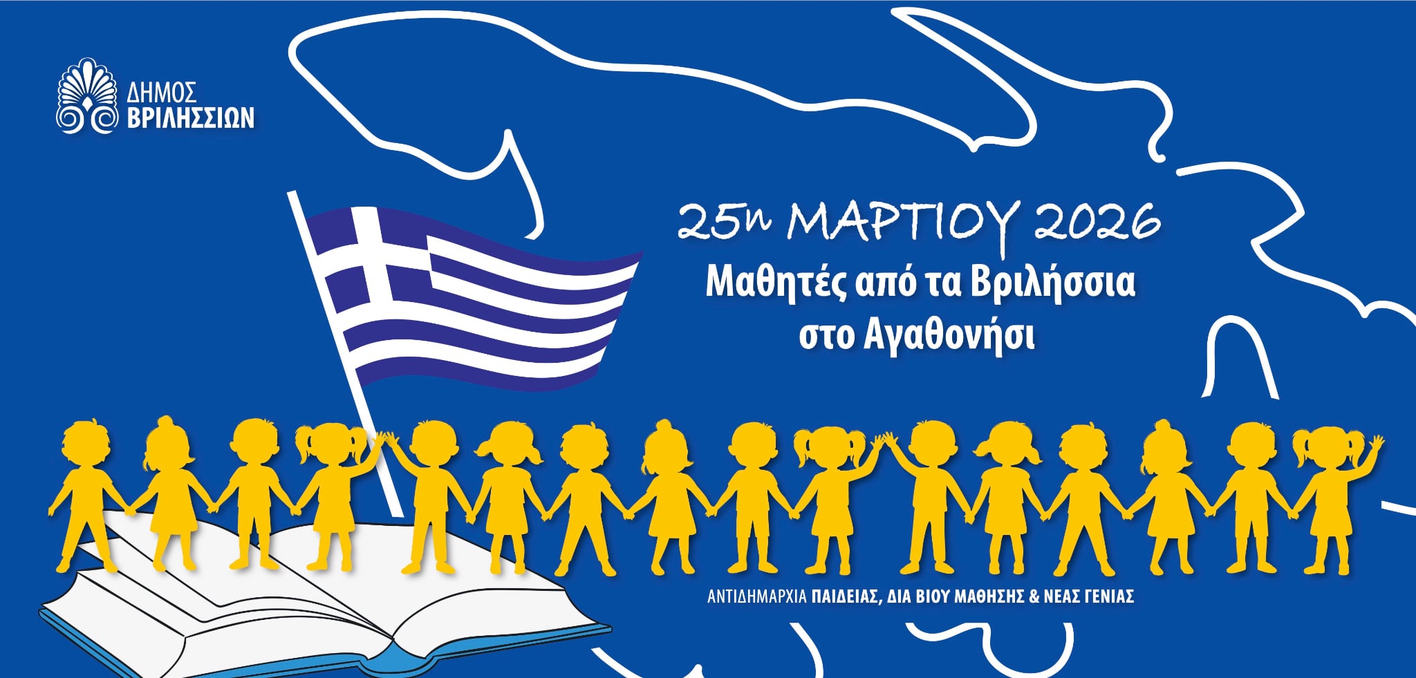 Ο Δήμος Βριλησσίων οργανώνει για πρώτη φορά αποστολή μαθητών στο ακριτικό Αγαθονήσι, προκειμένου να συμμετάσχουν στις εκδηλώσεις και στην παρέλαση για την Εθνική Επέτειο της 25ης Μαρτίου, στέλνοντας ένα ισχυρό μήνυμα στήριξης και αλληλεγγύης προς την τοπική κοινωνία του νησιού.