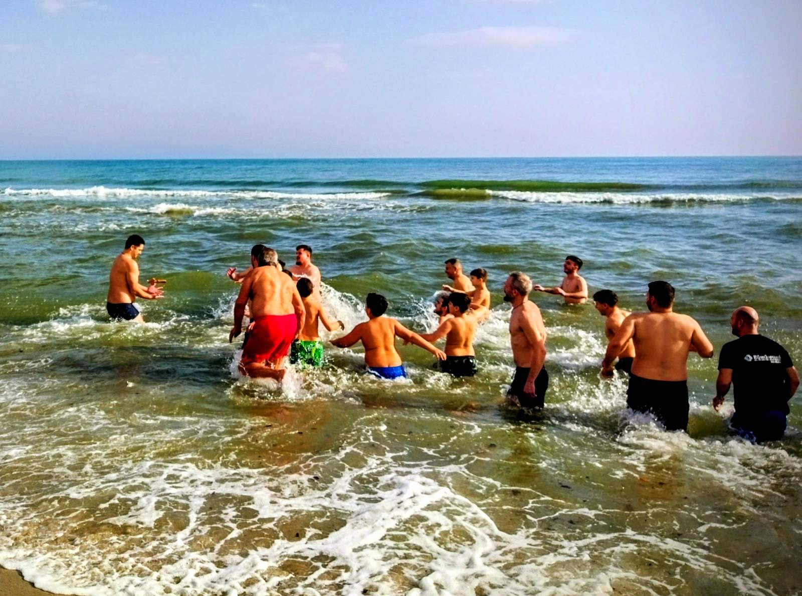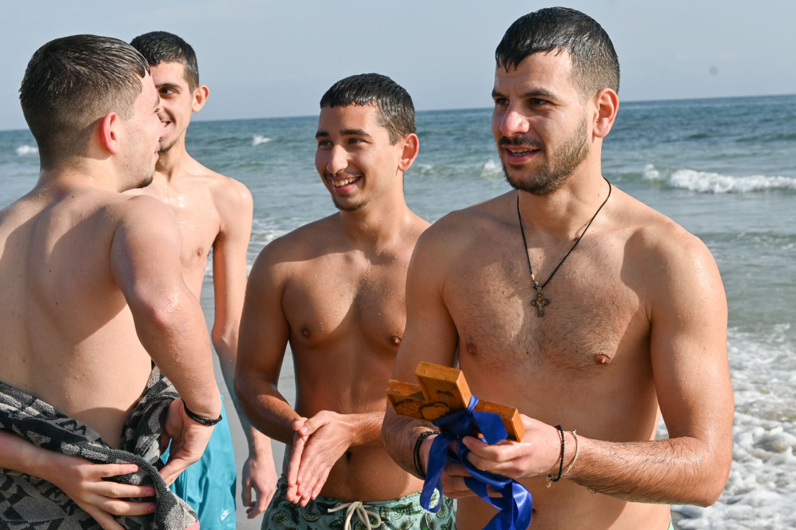 Στην Ολυμπιακή Ακτή, μετά τη Θεία Λειτουργία στον Ιερό Ναό Αγίου Προκοπίου, σχηματίστηκε πομπή προς τη θάλασσα, όπου τελέστηκε ο αγιασμός από τον Επίσκοπο Σαλώνων κ. Ιγνάτιο Σωτηριάδη. Τον Τίμιο Σταυρό ανέσυρε ο Ραφαήλ Υφαντής.