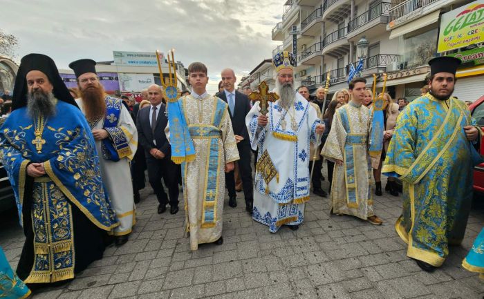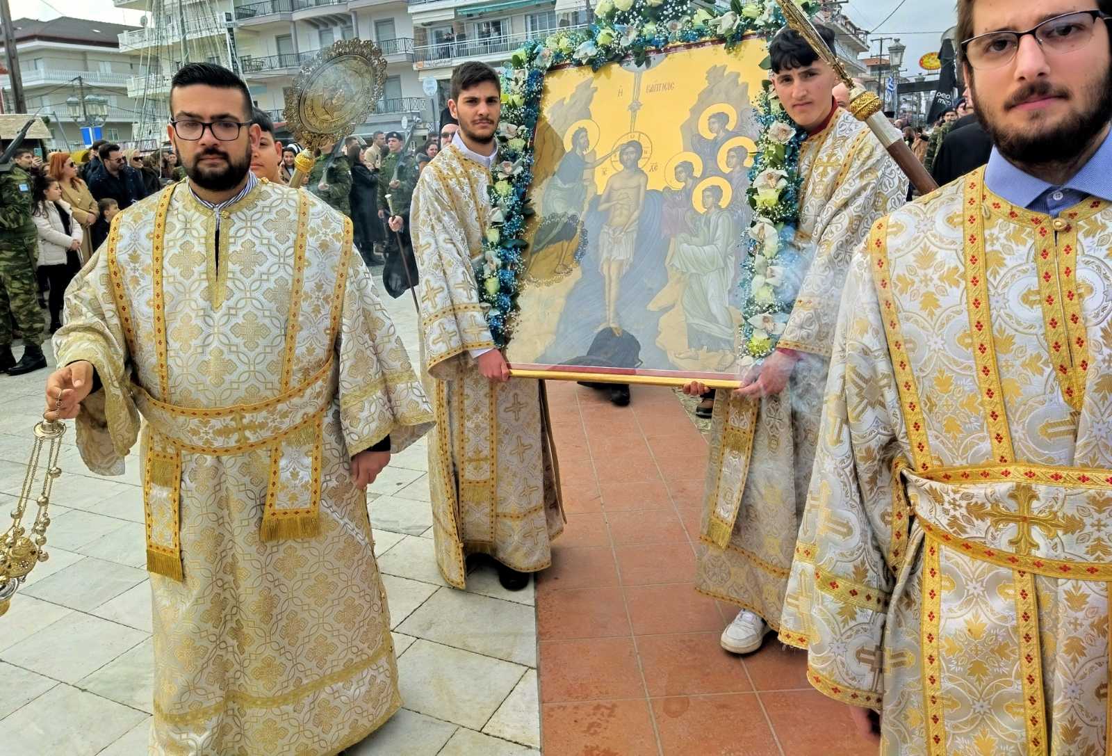 Με λαμπρότητα, ιδανικές καιρικές συνθήκες και με τη συμμετοχή πλήθους πιστών, η Κατερίνη τίμησε σήμερα τη μεγάλη εορτή των Θεοφανίων. Η κατάδυση του Τιμίου Σταυρού και ο Καθαγιασμός των υδάτων πραγματοποιήθηκε στο παραλιακό μέτωπο (Παραλία, Ολυμπιακή Ακτή & Κορινό). Τον Δήμαρχο Κατερίνης, Ιωάννη Ντούμο εκπροσώπησε η Αν. Δημάρχου – Αντιδήμαρχος Πολιτισμού & Τουρισμού, Ελίνα Διαμαντοπούλου, ενώ παρέστησαν εκπρόσωποι αρχών και φορέων, συλλόγων, καθώς και οι αντιδήμαρχοι Κατερίνης: Μιχάλης Γεωργιάδης, Ανέστης Μυστρίδης, Λευτέρης Παγωνίδης, Ηλίας Τάπρας, μέλη του Δημοτικού Συμβουλίου, η πρόεδρος της Κοινότητας Κατερίνης, Ελευθερία Κορίτσα, τοπικοί σύμβουλοι κ.ά.