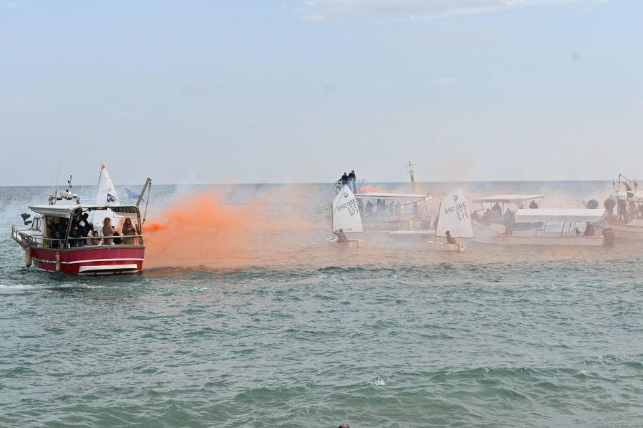 Ακολούθησε λιτανευτική πομπή, συνοδεία του Ιερού Κλήρου, της Φιλαρμονικής του Δημοτικού Ωδείου και αγήματος του Στρατού, η οποία κατέληξε στον προβλήτα, όπου έγινε η ρίψη του Τιμίου Σταυρού. Με σύμμαχο τον καλό καιρό, δεκάδες κολυμβητές βούτηξαν στα νερά, με τον Βαλάντη Πολύζο να είναι ο τυχερός που ανέσυρε τον Σταυρό.
